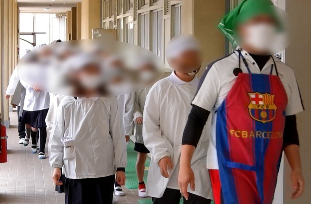 本校の1年生教室は2階にあり、食缶運びを当面の間、6年生がしてくれています。6年生ありがとう!