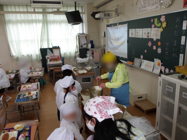 今年の1年生は、お行儀がよく、先生の話をきちんと聞ける子が多いです。残食も少なく、みんなモリモリ給食をいただいています。