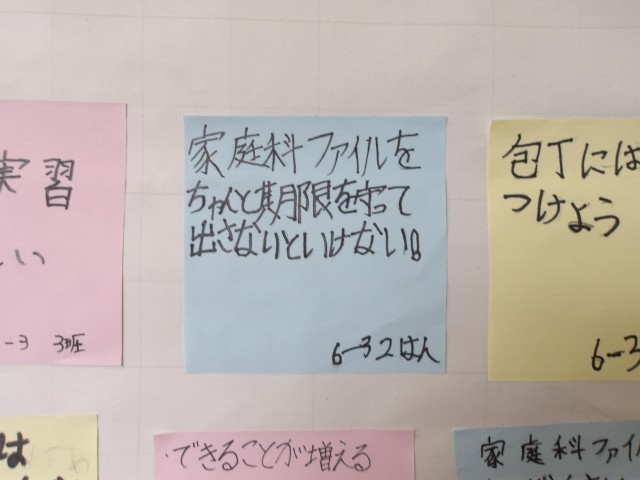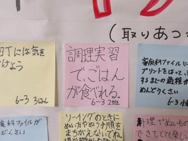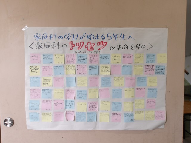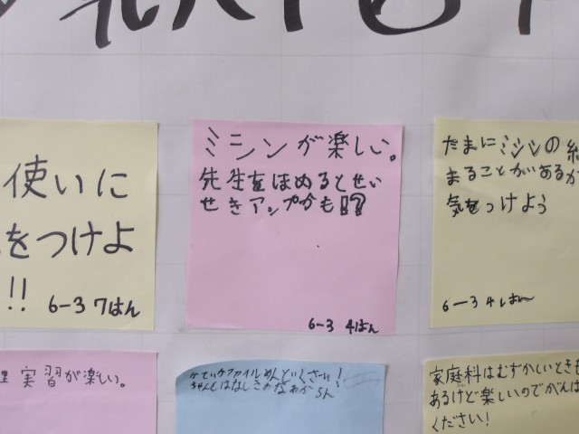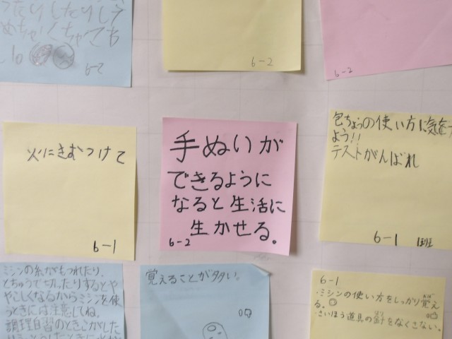 家庭科が5年生から始まりますが、6年生からメッセージが届きました。