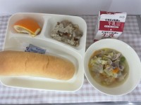 ≪献立≫・コッペパン・ブルーベリージャム・押麦のグラタン・スープ・牛乳 今...