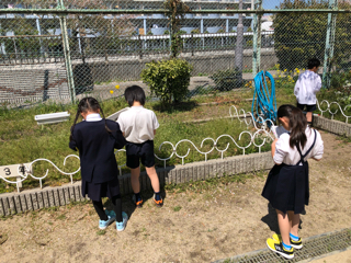 それぞれがお気に入りの虫や植物をみつけて、ワークシートにスケッチしていました。中には、めずらしい姿をしている植物をみつけた子もいて嬉しそうでした。あたたかい気候なので、教室から出て学習するのも気持ちよかったみたいです。