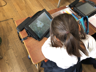 タブレットの撮影機能を使って校庭の植物を観察しました。