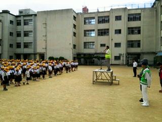 いつも見守っていただいている方々なので、話を聞く子どもたちの顔も真剣でした。放出小のみなさんは、校区で出会った時、しっかりと「おはようございます」「こんにちは」「ありがとうございます」「さようなら」とあいさつができるようになってほしいと思います。