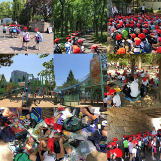 24日(金)、1年生は初めての校外学習でした。学校を離れて、大人数で道を歩いたり電車に乗ったりするのが初めてで、みんなワクワクしていました。大阪城公園に着いたら、学校や近所の公園にはない大きな遊具で元気いっぱいに遊びました。