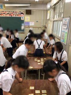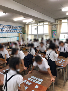 4年生全体で百人一首大会をしました。1学期の間、熱心に取り組んでいたので上の句だけで札をとれる子も多くて、とてもレベルの高い戦いでした。