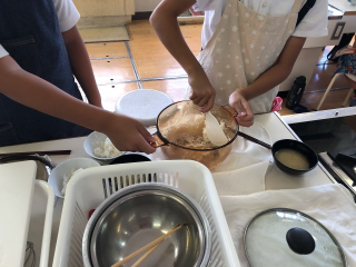 5年生は、調理実習でごはんとみそ汁を作りました。