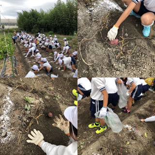 17日(木)、2年生は校外学習でいも掘りに行きました。