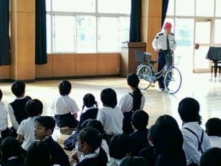 11月1日(金)、4年生は城東警察署の方から《安全で正しい自転車の乗り方について》教えていただきました。道路標識や安全確認について学習した後、実際に自転車に乗って気をつけるポイントを確認しました。