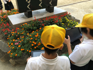 4年生は、タブレットを利用して、校庭の植物や昆虫などを観察しました。