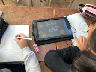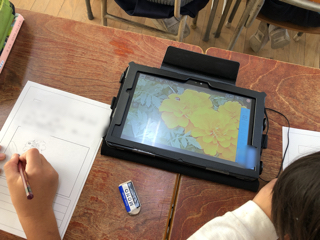 二人一組でタブレットでお気に入りの植物や昆虫を撮影し、それを観察シートにまとめました。同じ植物であっても、上下左右いろんな角度から観察していくことで新たな魅力も発見することができました。