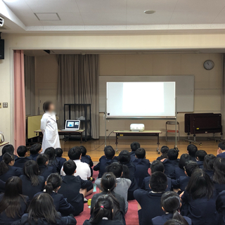 薬剤師の先生に来ていただき、ふだん飲んでいるくすりについてのお話を聞きました。身近なものですが、なんとなくで利用していたり、間違った知識のまま飲み続けていることも多いです。今日の学習した知識を生かして正しくくすりを飲むようにしましょう。