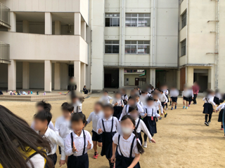 待ち遠しかったのか、今日は登校してすぐからたくさんの子どもたちが運動場のトラックを走っていました。高学年は放出タイムに、低学年は10分休みに運動委員会を先頭に音楽に合わせて走りました。
