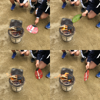 新聞紙に火をつけて、木、炭と徐々に燃え移らせていき、ようやくおもちを網にのせます。そこから、「まだかな、まだかな」とひっくり返しながら焼きました。お家だと簡単に焼けるおもちがなかなか焼けず、七輪で焼くことの大変さを知りました。