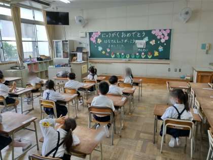 今日18日(月)は、1年生も教室で、担任の先生からいろいろなお話をききました。