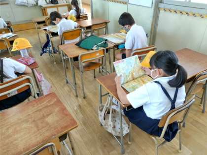 学習園づくりをしたり、間隔をとって少し体を動かしたり、地図帳を使って学習したり・・・。