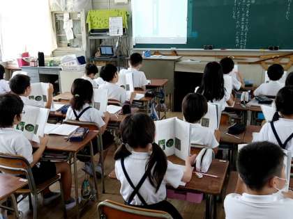 学習の場面に応じて《フェイスシールド》も活用しています。