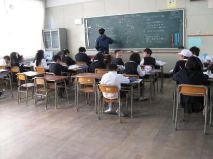 クラスの人数を半分に分けて、教室も2つにして、授業をします。子どもたちには、1クラスの人数が少なくなるので、先生に質問しやすく、授業も集中して聴けると好評です。