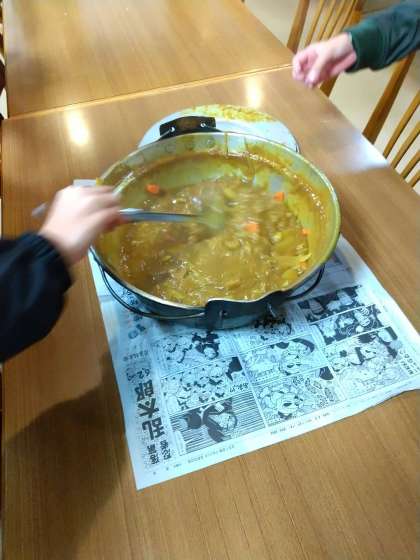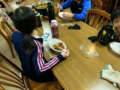 みんなでカレーを作りました。薪に火をつけるのが大変でしたが、力を合わせて作ったカレーは、いつも以上に美味しかったです。