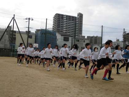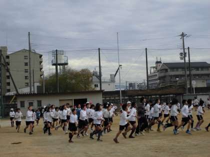 第2グランドで行われていたマラソン週間の様子です。寒い中、どの子もまじめにとりくんでいました。