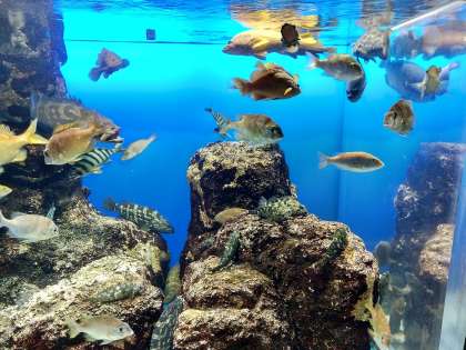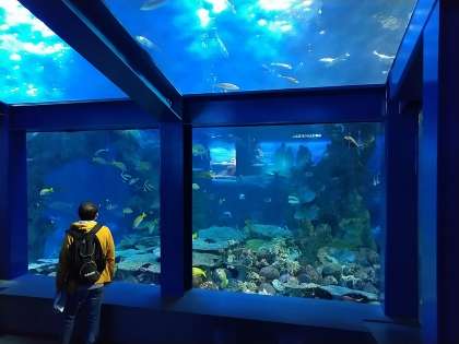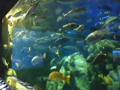 雨天ということもあり、水族館には大勢の小学生が来場していました。週末で一般の方もたくさん見学されていました。