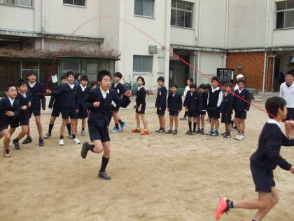 始める前に集まって相談をしているグループもありました。また、低学年が飛びやすいように話し合って、縄の回し方を工夫している姿も見られました。代表委員も丁寧に優しく対応していました。
