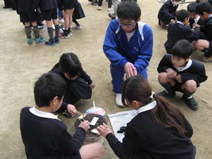 もちを焼くいい匂いがしてきたら、完成です。少々、こがしてしまった子もいましたが、おいしくいただきました。