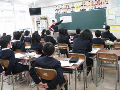 クラス分けは、児童それぞれの希望と、レディネス(準備状態)テストの結果をふまえて行います。2クラスを3つに分けて、教諭3〜4名で指導していました。