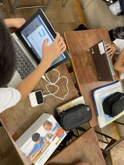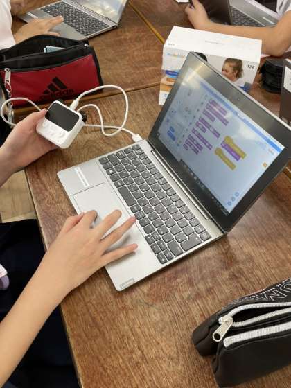 5年生が、コーディー(ロボット)のプログラミング学習をしました。