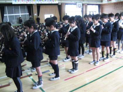3月19日の卒業式を前に、在校生が6年生を送る会を催しました。それぞれの学年で、一生懸命練習した演奏や、呼びかけの言葉を披露してくれました。