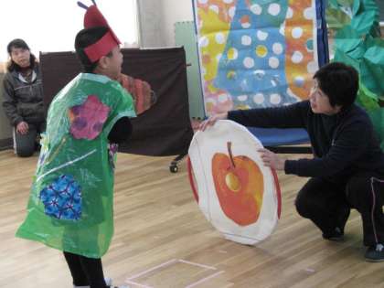 「はらぺこあおむし」の絵本を題材に、たんぽぽ学級の児童が劇を披露してくれました。日ごろから、練習を重ね、すばらしい劇となりました。