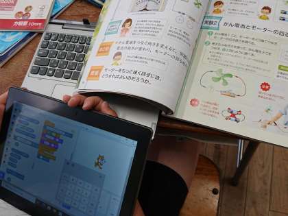 4年生が、プログラミングソフトのスクラッチを使って、理科「電気のはたらき」のまとめ学習をしました。