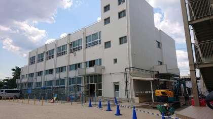 放出小学校では、夏休み中も大規模な工事が続きます。