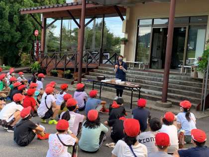 宿舎の方に夕食のカレーの作り方を説明していただいています。