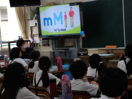 マスクをしながらなので、大きな声は出せませんが、歌に合わせて英語の発声をしたり、手拍子をしたり、とても楽しそうに活動していました。
