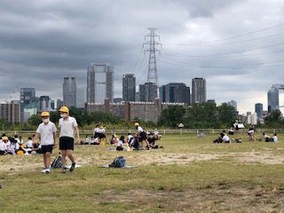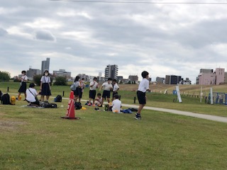 河川敷でお弁当を食べました。