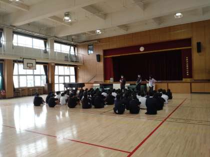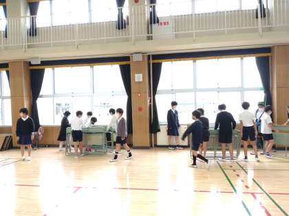 シートを敷いて、椅子を並べて、掲示物を貼って……