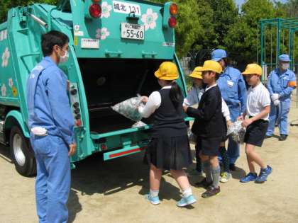 係の方からごみ収集の苦労や、注意点などをお聞きして、しっかり学習していました。環境とごみの問題を考えることは、子どもたちも将来、必ず必要になることです。真剣に話を聞いていました。