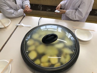 2年生が、学習園で採れたさつまいもを焼いて食べました。
