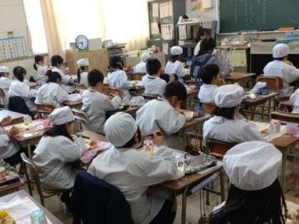 毎日、給食の用意の時間になると、放送委員会の児童が、