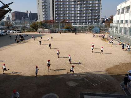 休み時間には、子どもたちが運動場に出て、楽しそうに遊んでいました。