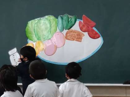 1年生が、国語の物語文『サラダでげんき』のまとめをしました。