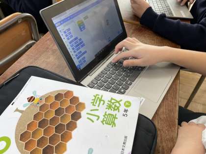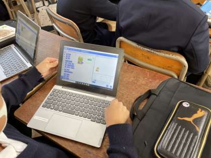 5年生が、算数の授業で、スクラッチを使ったプログラミング学習をしました。