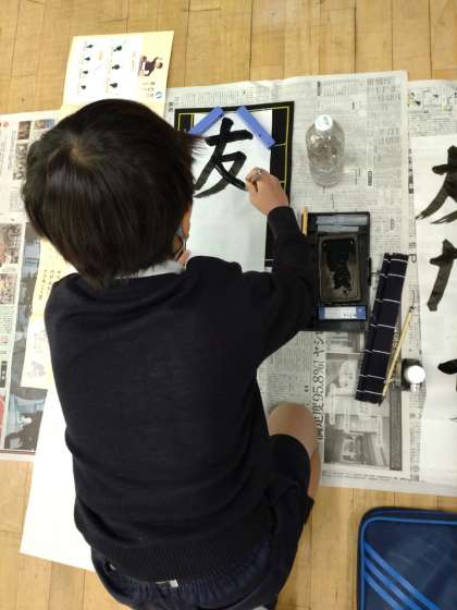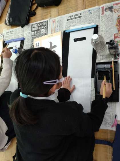 3年生が、書写の学習で書初めにチャレンジしました。