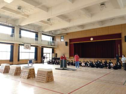 ゲストティーチャーのみなさんが放出小学校に来てくださって、実際に車いすに乗ったり、車いすを押したりして、活動しました。
