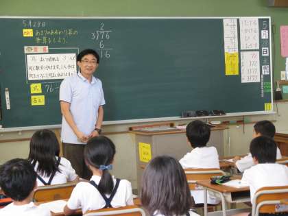 この日は、4年生が「わり算」の授業を受けていました。難しいわり算の筆算も教室内の人数が少ないと、分からないところがすぐに質問でき、子どもたちにも好評です。
