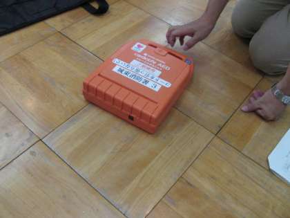 本校にもAEDの機械がありますので、使い方もしっかり、学びました。