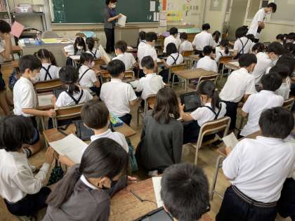 1年生が、一人一台端末を操作して、「心の天気」を入力しました。