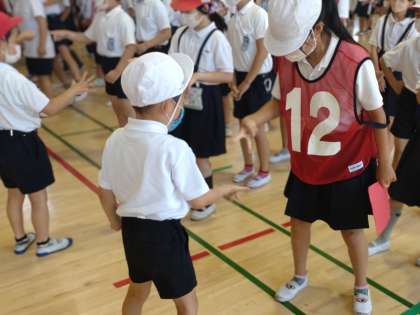 今日は、縦割り班の赤チームで、王様じゃんけんをしました。