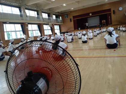 5年生が、講堂でソーラン節の練習をしました。