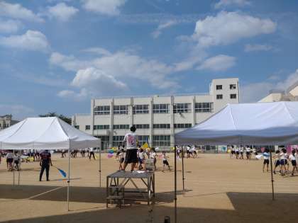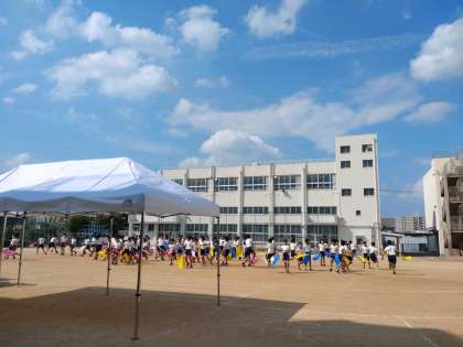 隊形移動や振り付けを確認し、一曲通して練習していました。